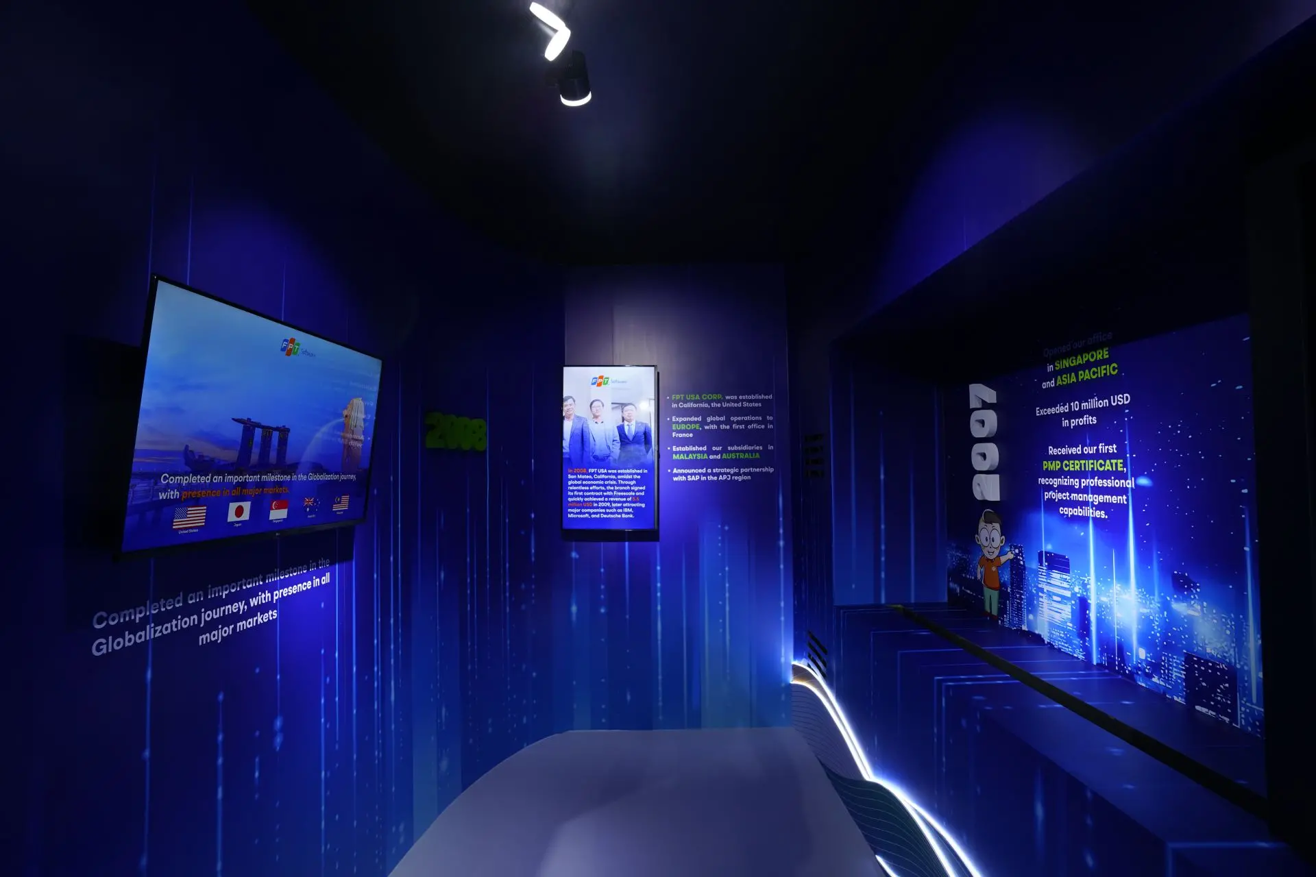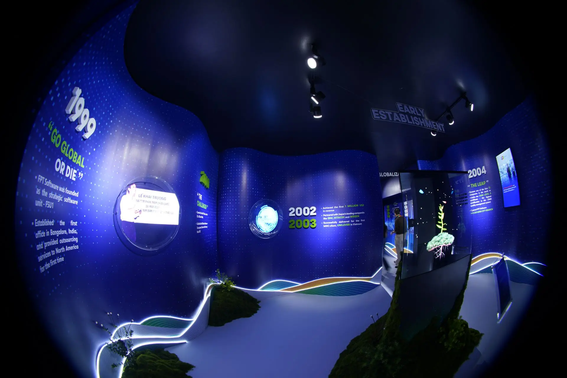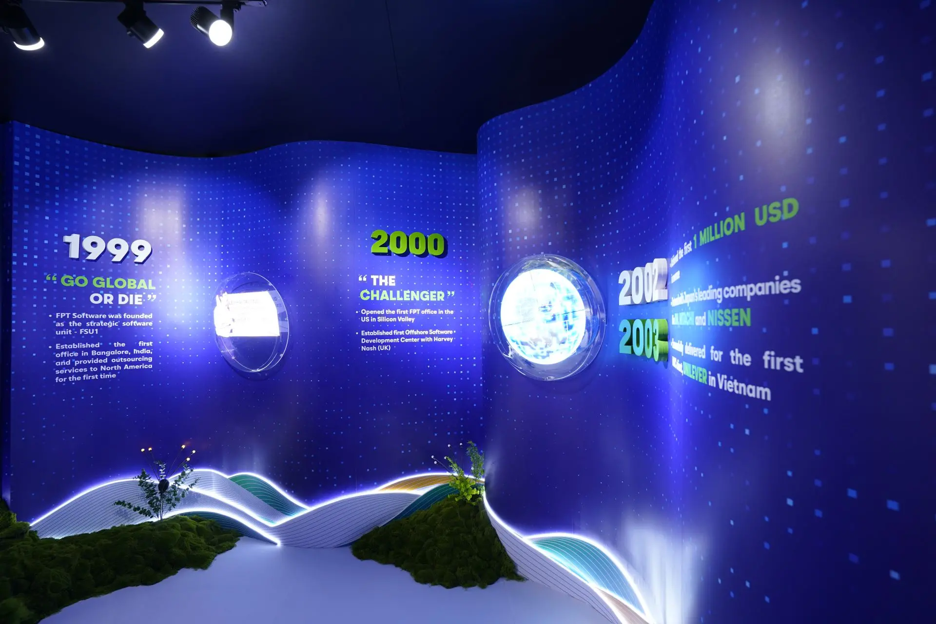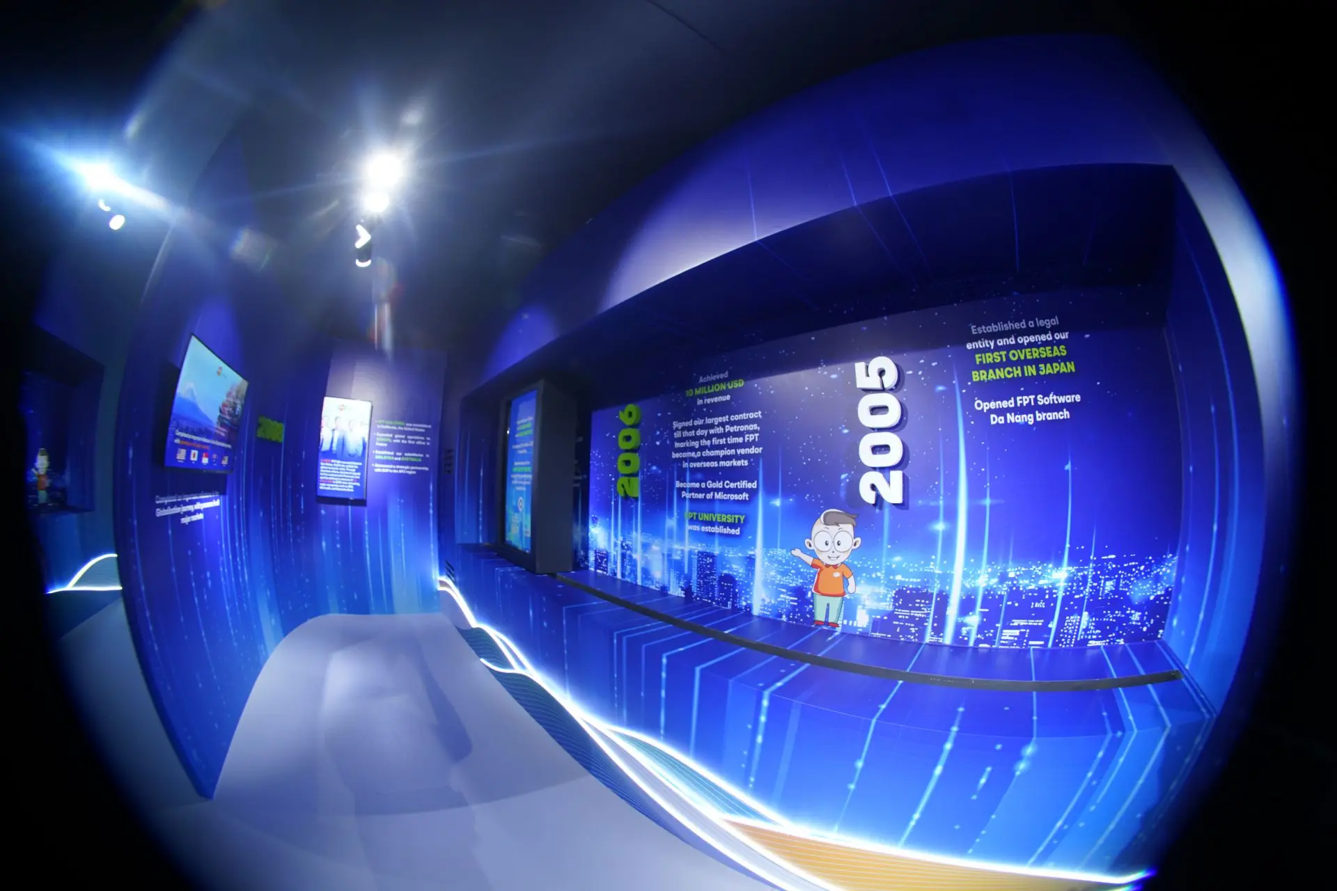 Milestone Communications proudly presents the FPT History Tunnel project, showcasing our expertise in bold concepts, cutting-edge technology, and seamless execution. As the creative force behind the design, construction, and operation, we deliver stunning, immersive experiences on time, blending innovation and artistry to bring history to life like never before.