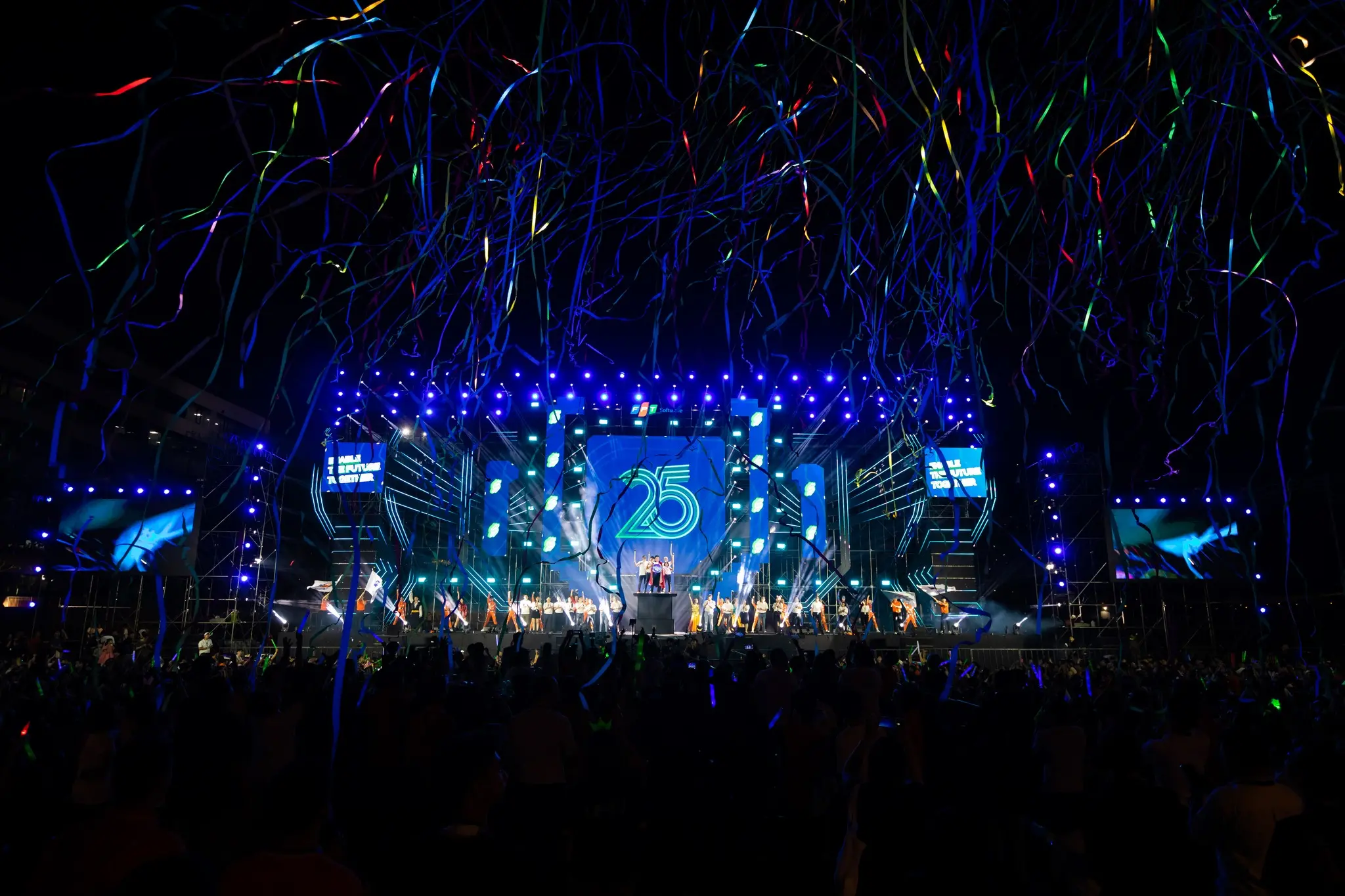 The stage is meticulously designed with an attractive layout that reflects the cheerful and dynamic spirit of the event.