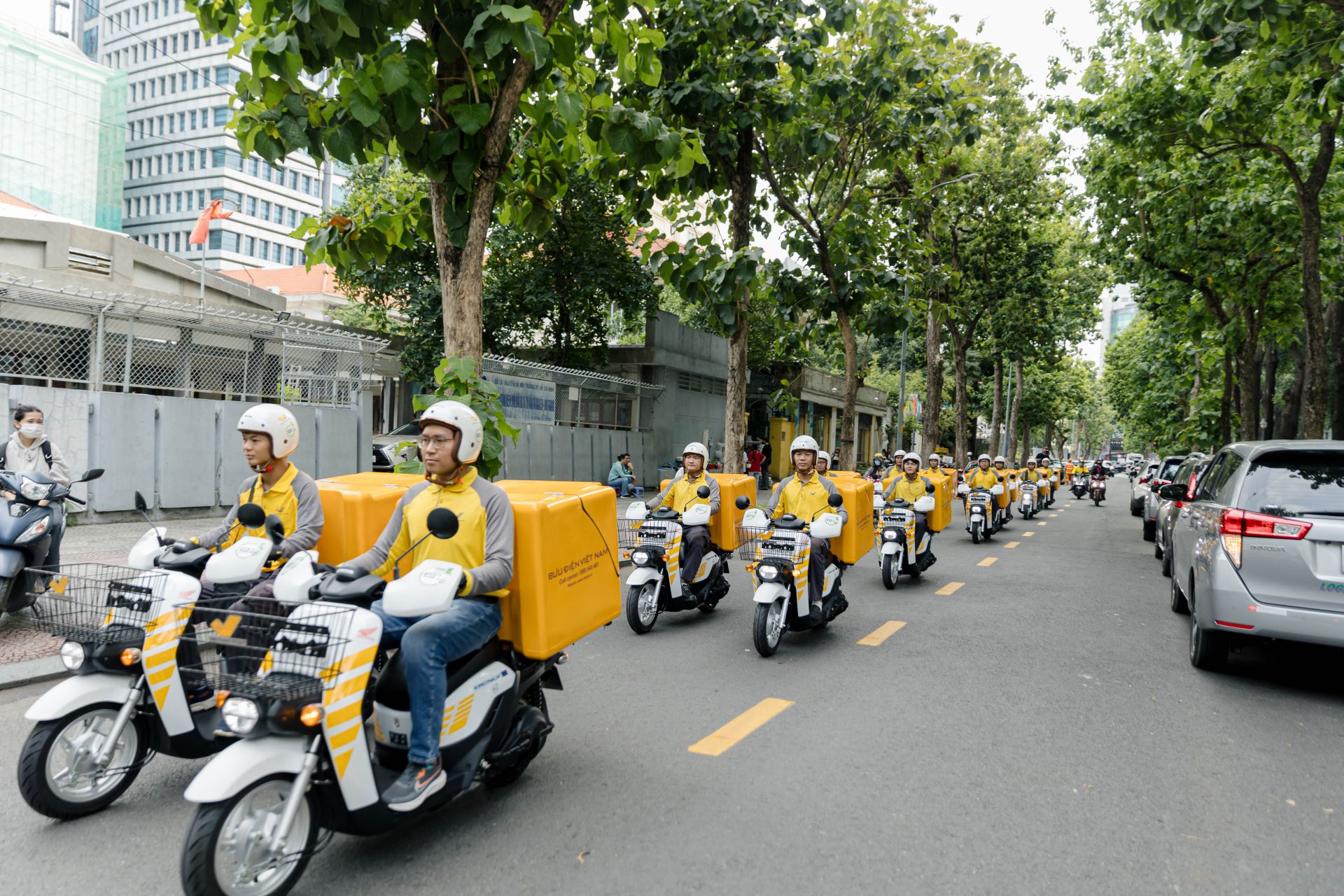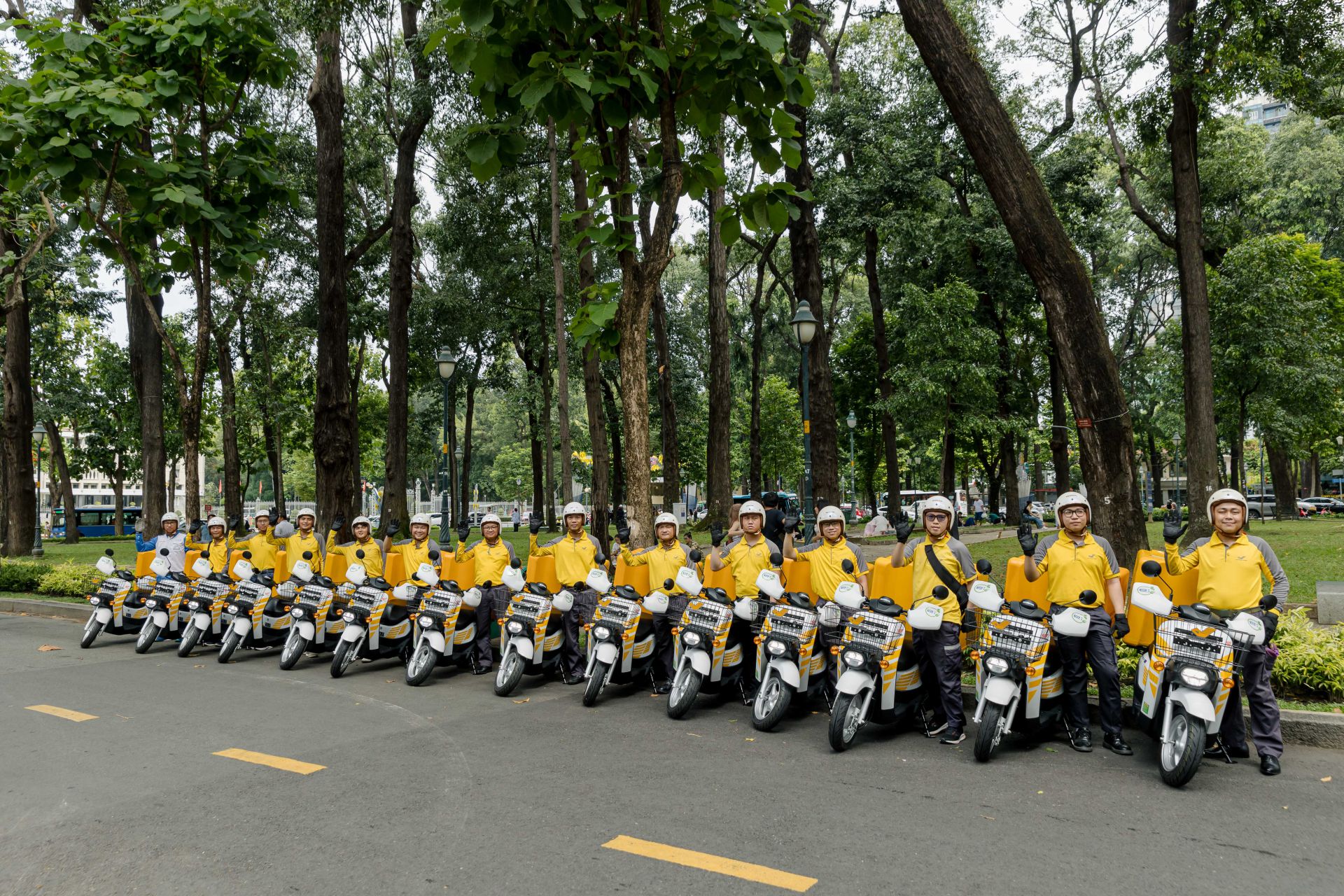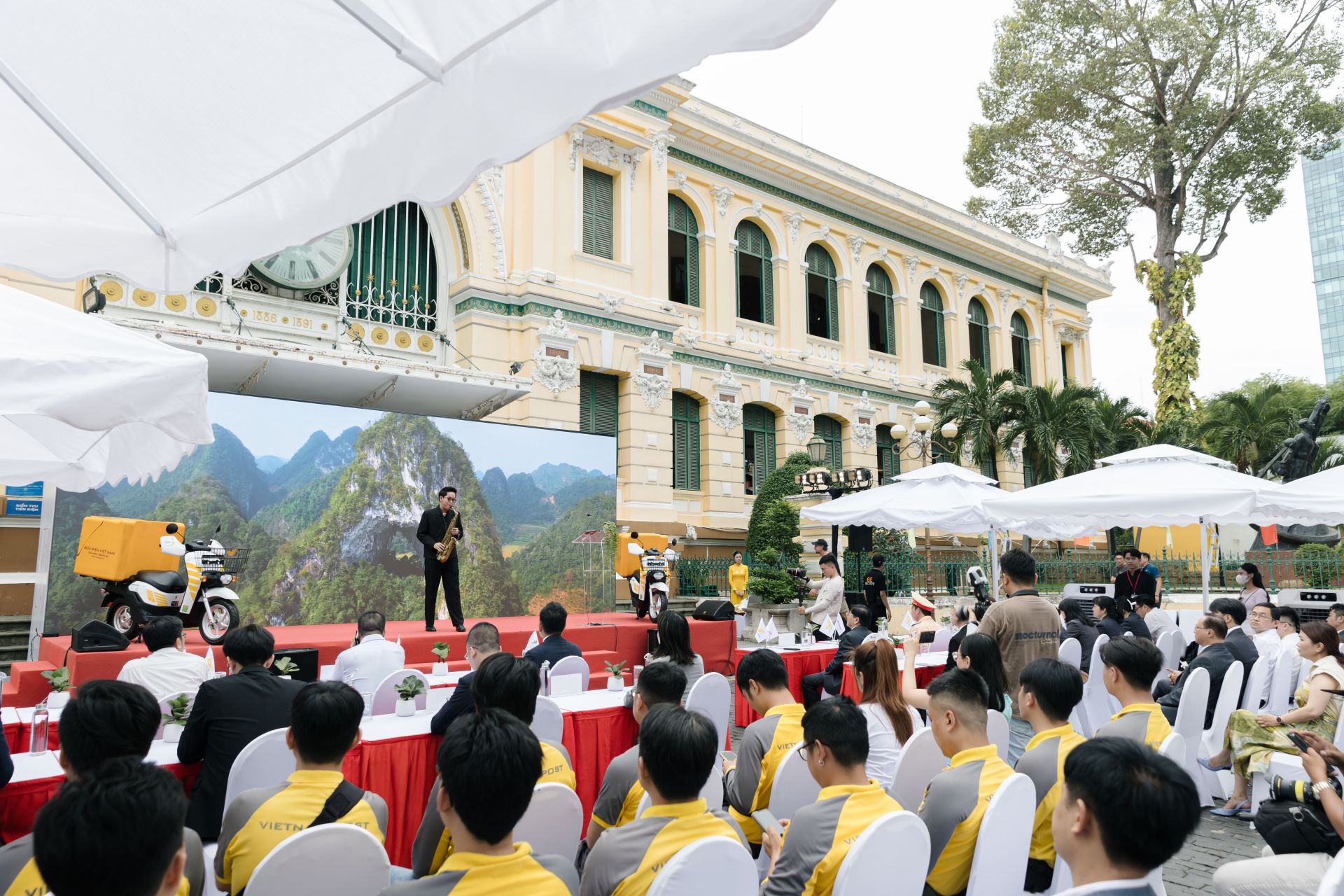The image of electric delivery motorcycles lined up against the backdrop of the Central Post Office represents a strong statement of progress toward eco-friendly mobility solutions in Vietnam.