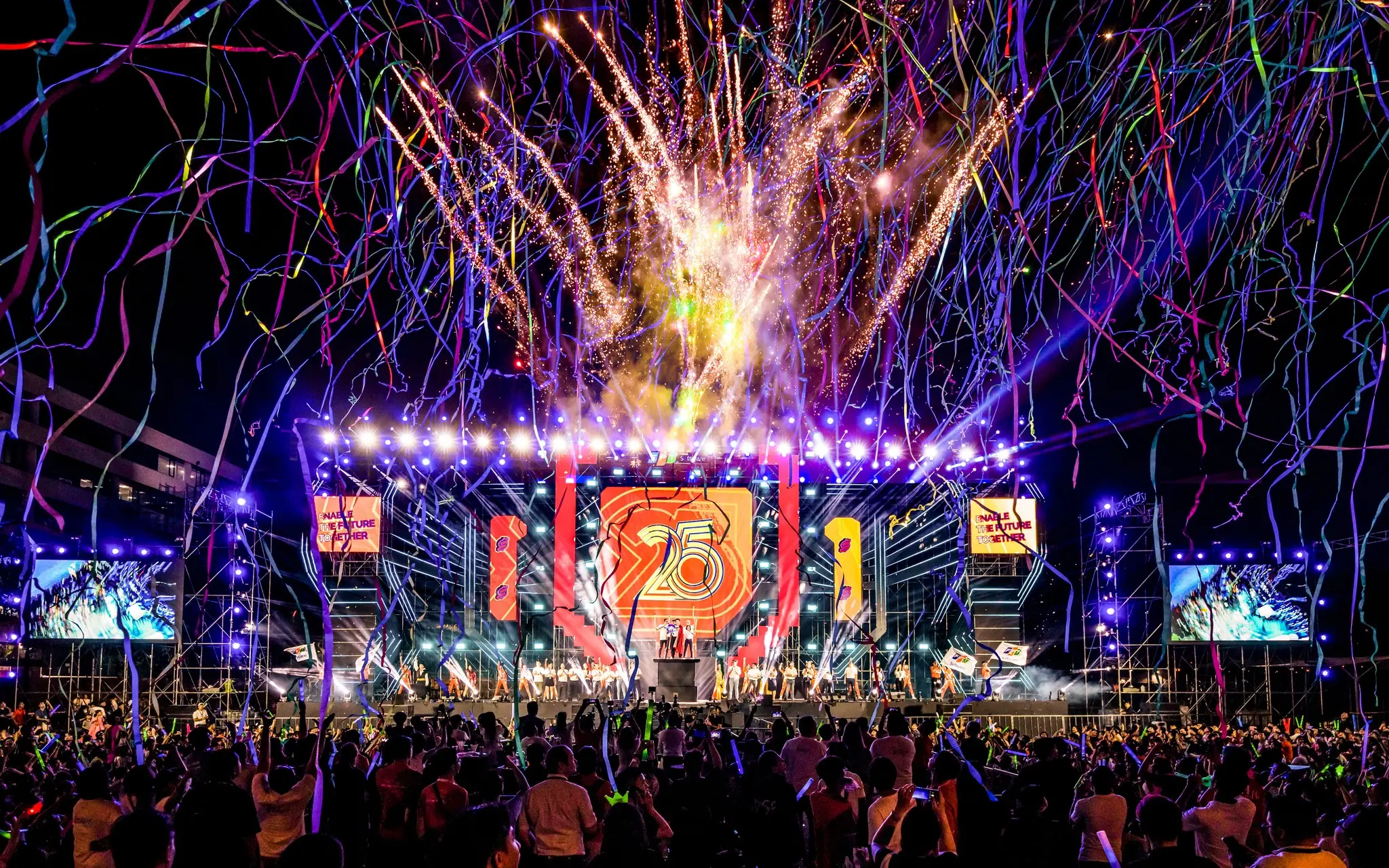 The stage is meticulously designed with an attractive layout that reflects the cheerful and dynamic spirit of the event.
