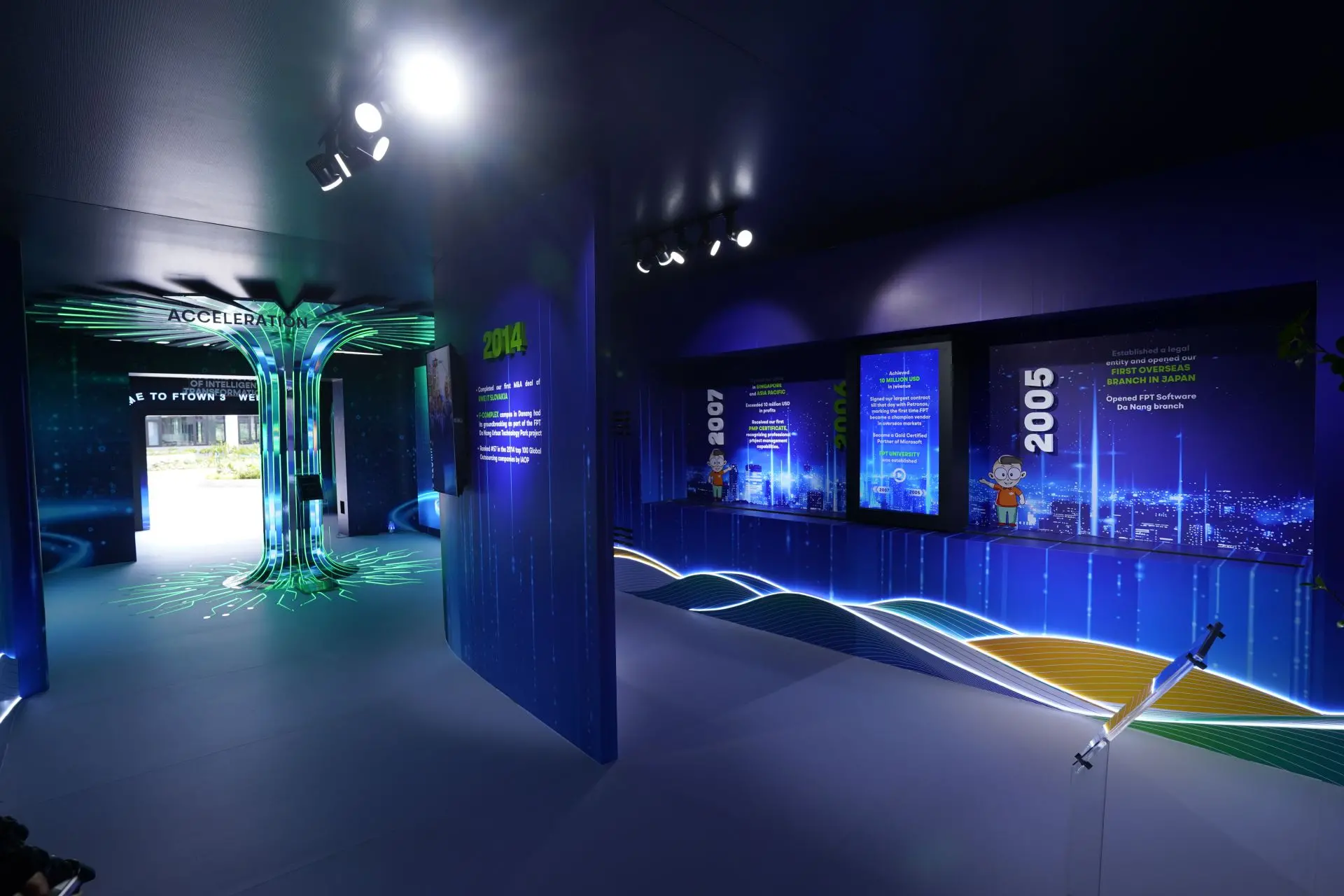 Milestone Communications proudly presents the FPT History Tunnel project, showcasing our expertise in bold concepts, cutting-edge technology, and seamless execution. As the creative force behind the design, construction, and operation, we deliver stunning, immersive experiences on time, blending innovation and artistry to bring history to life like never before.
